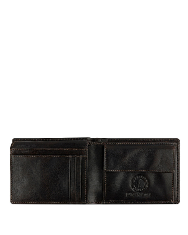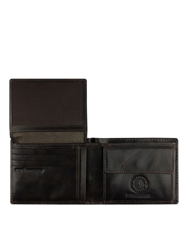 Функциональная организация: 2 отделения для купюр, 7 слотов для кредитных карт, 4 кармана, сетчатый карман, отделение для монет, защита от сканирования RFID.