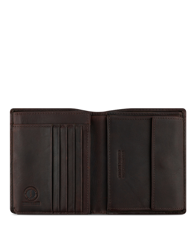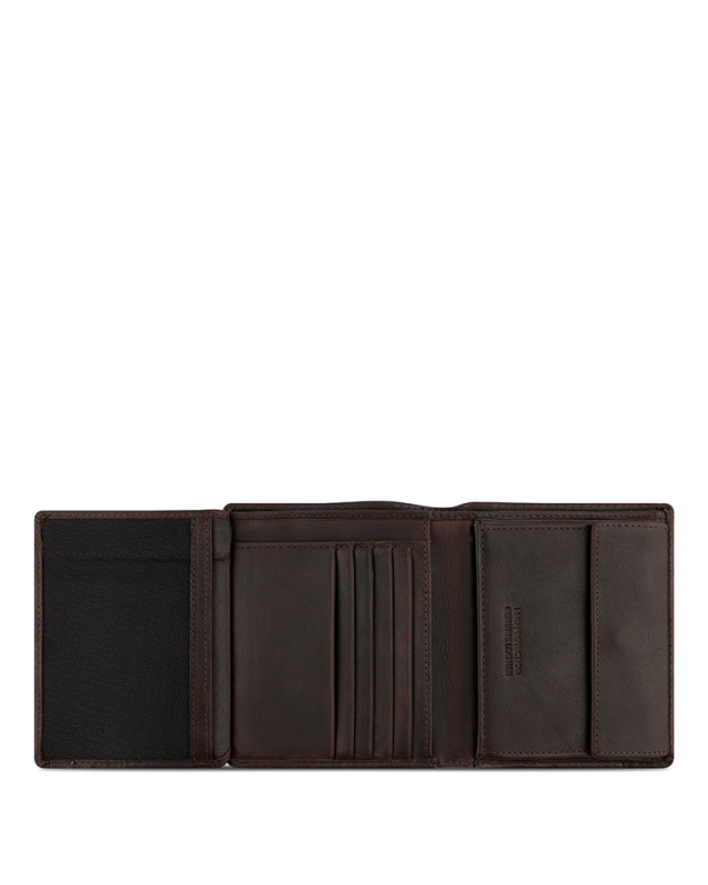 Функциональная организация: 2 отделения для купюр, 10 слотов для кредитных карт, 4 кармана, сетчатый карман, отделение для монет, защита от сканирования RFID.