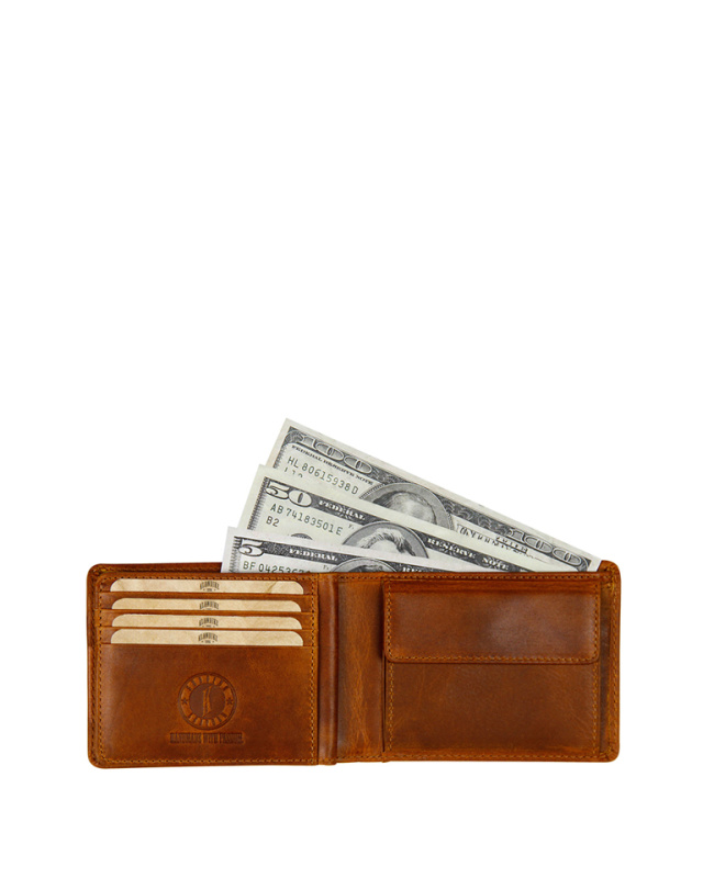Бумажник KLONDIKE DIGGER «Angus», натуральная кожа в коньячном цвете, 12 х 9 x 2,5 см