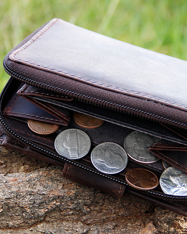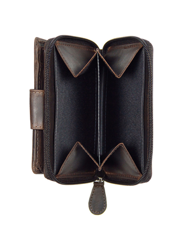 Функциональная организация: 12 отделений для кредитных карт, 1 отделение для купюр, 7 карманов, отделение для мелочи на молнии, сетчатый карман, застежка-кнопка