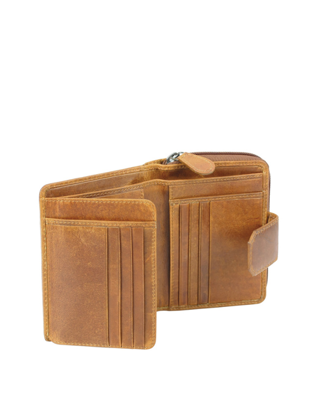 Функциональная организация: 12 отделений для кредитных карт, 1 отделение для купюр, 7 карманов, отделение для мелочи на молнии, сетчатый карман, застежка-кнопка