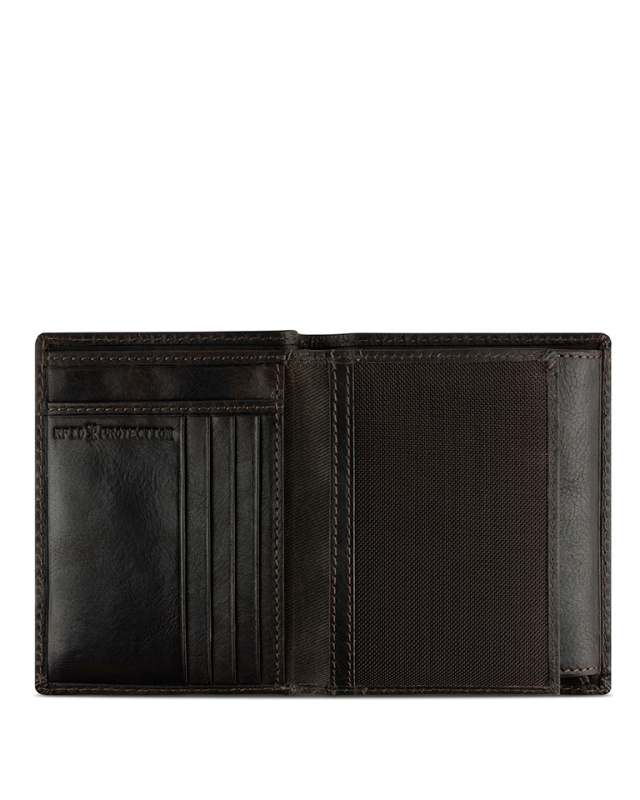 Функциональная организация: 2 отделения для купюр, 8 слотов для кредитных карт, 6 карманов, сетчатый карман, отделение для монет, защита от сканирования RFID.