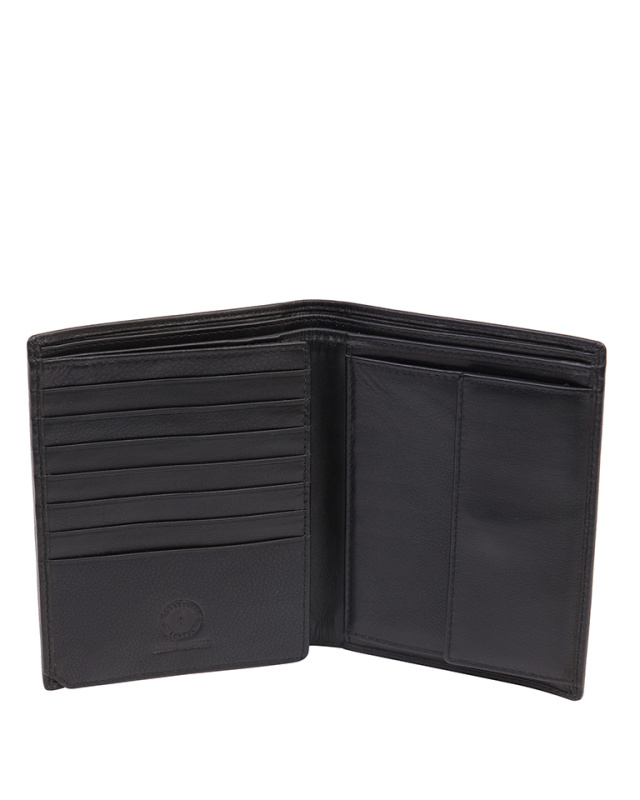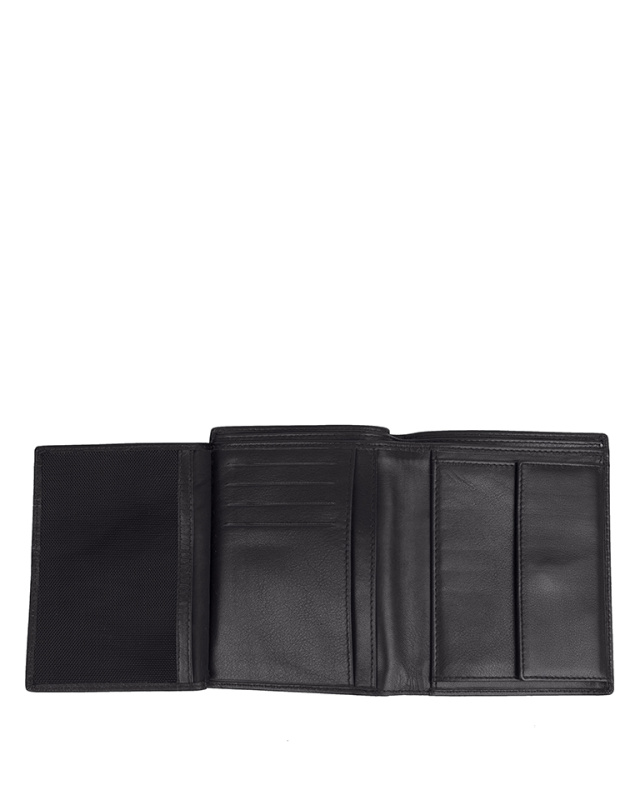 • Этот бумажник оснащен 11 отделениями для кредитных, дебетовых и остальных карт того же размера. Также он содержит 3 боковых отделения для хранения фотографий, календарей и т.д. Отделение, разделенное на две секции, позволяет хранить банкноты в развернутом виде. Большой отдел для монет закрывается с помощью надежных заклепок.