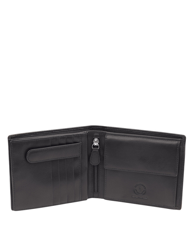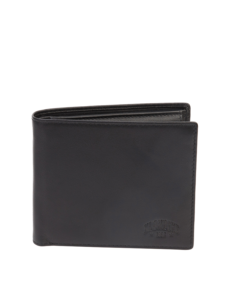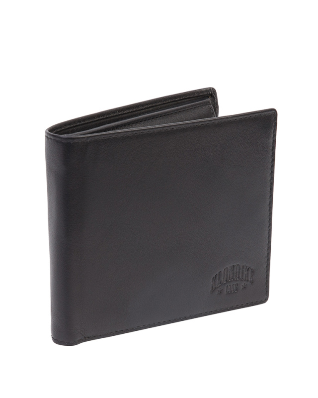 KLONDIKE 1896 ® Бумажник мужской серии «Claim» | Высококачественная натуральная кожа в черном цвете | 9 отделений для кредитных карт, 3 боковых отделения, 2 отделения для купюр, 1 отделение полузакрытого типа, 1 отделение для монет | Бумажник
