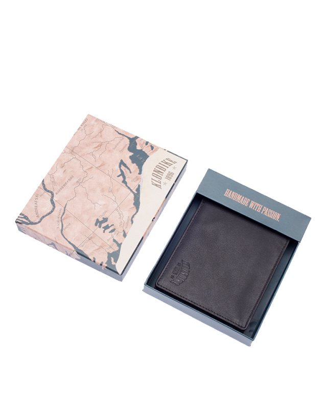 • Бумажник высочайшего качества фирмы «Klondike» сделан из натуральной кожи и обеспечивает безопасное хранение купюр, монет, кредитных карт, удостоверения личности и документов за счет удобных отделений.