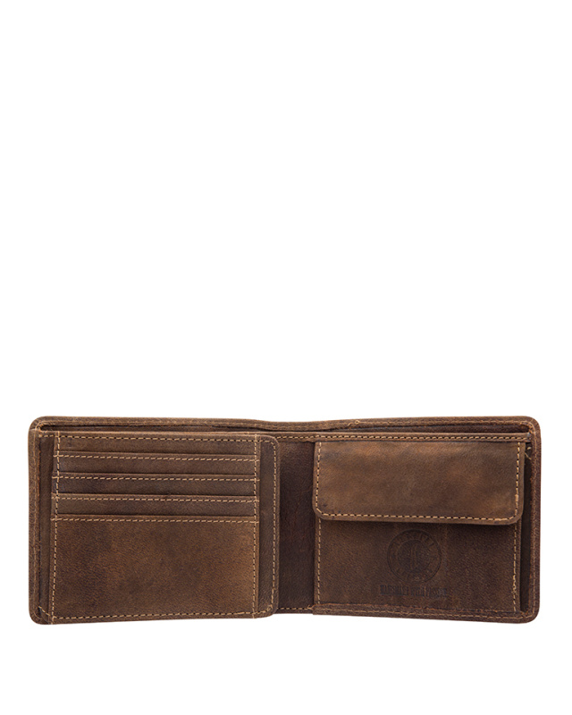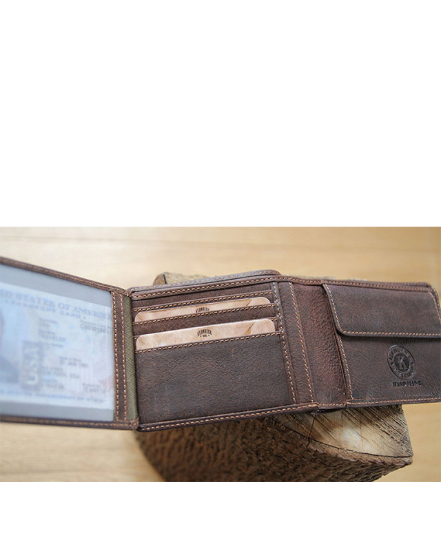 • Бумажник высочайшего качества фирмы «Klondike» сделан из натуральной кожи и обеспечивает безопасное хранение купюр, монет, кредитных карт, удостоверения личности и документов за счет удобных отделений.