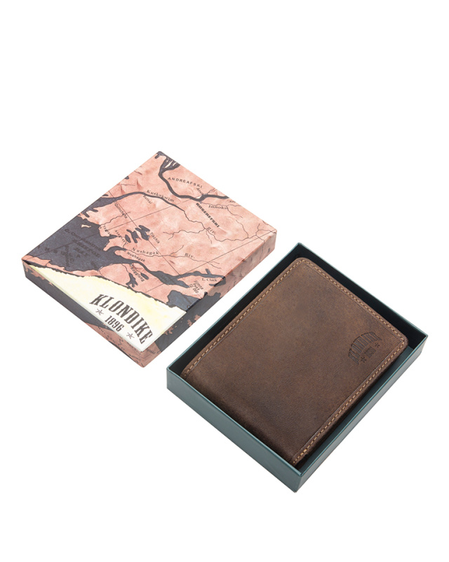 • Тиснение фирмы «Klondike» ненавязчиво нанесено на поверхность бумажника и придает ему стильный внешний вид. Этот бумажник станет Вам верным и долговечным спутником.