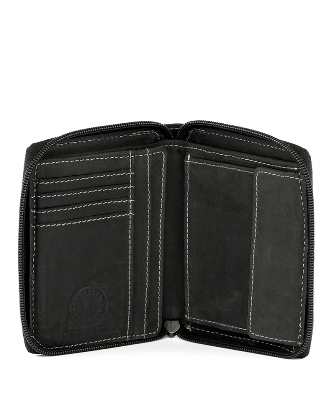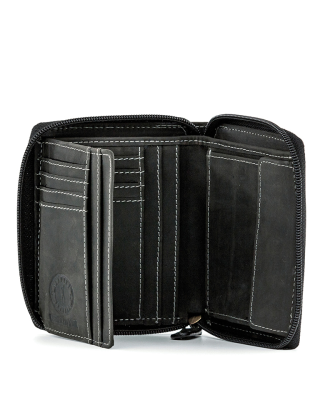 Функциональная организация: 2 отделения для купюр, 8 слотов для кредитных карт, 6 карманов, сетчатый карман, отделение для монет.