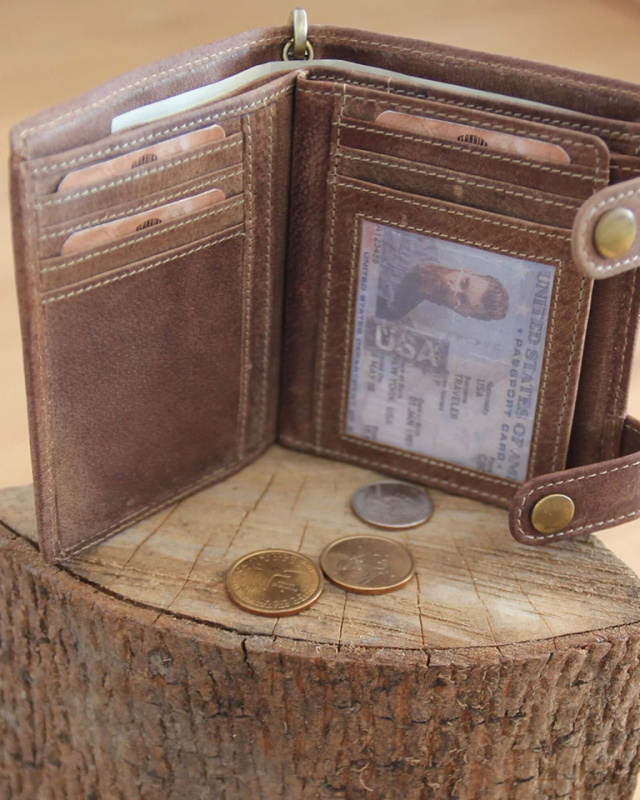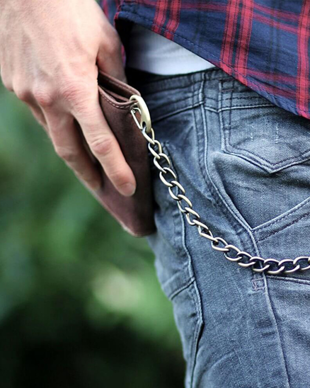 Бумажник из натуральной кожи с металлической цепочкой