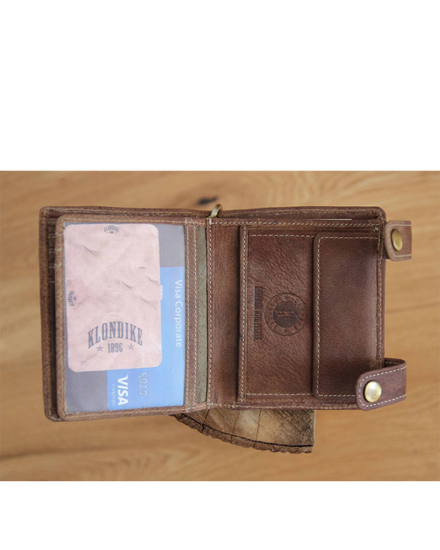 KLONDIKE 1896 ® TIM BIKE Бумажник мужской | натуральная кожа первоклассного качества|оттенок: коричневый | тиснение, металлическая цепочка, 6 отделений для кредитных карт, 2 отделения полузакрытого типа, 2 отделения для купюр | Бумажник