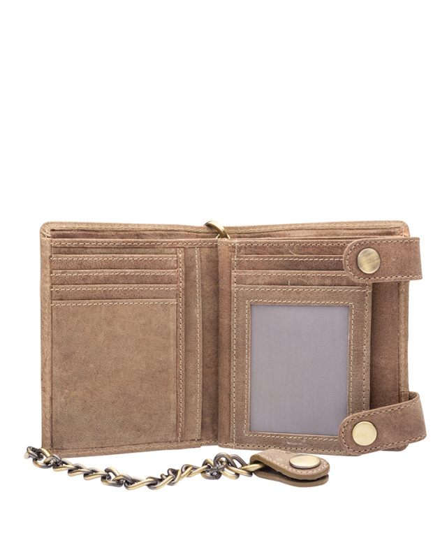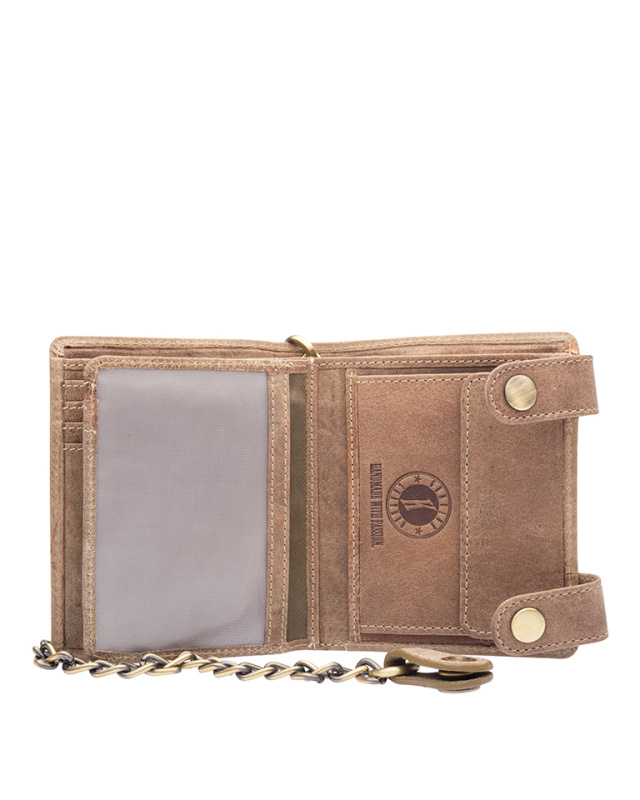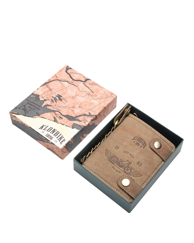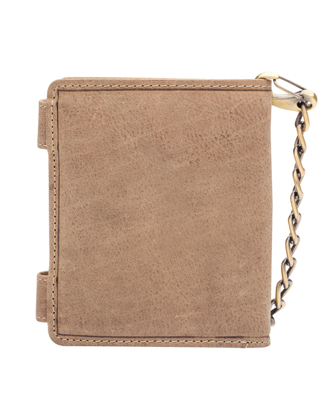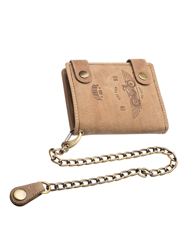 Бумажник с металлической цепочкой KLONDIKE «Tim Bike», натуральная кожа в светло-коричневом цвете, 11,5 х 12,5 х 3 см