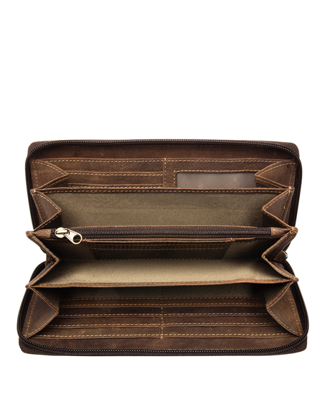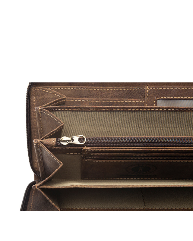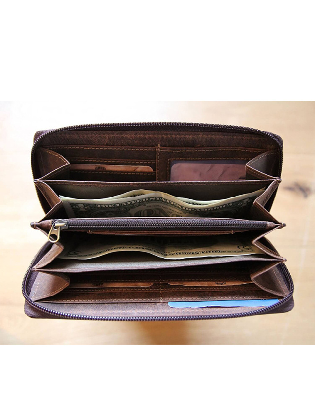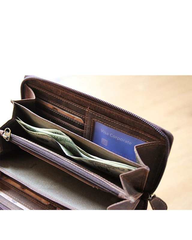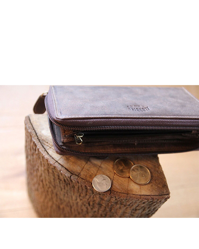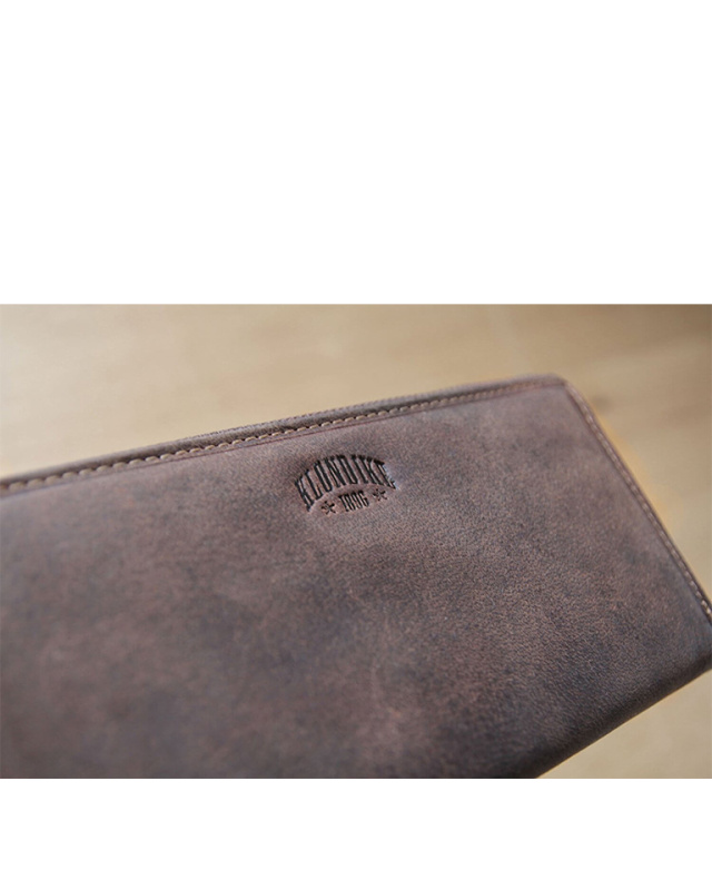 • Бумажник высочайшего качества фирмы «Klondike» сделан из натуральной кожи и обеспечивает безопасное хранение купюр, монет, кредитных карт, удостоверения личности и документов за счет удобных отделений и застежки на молнии.
