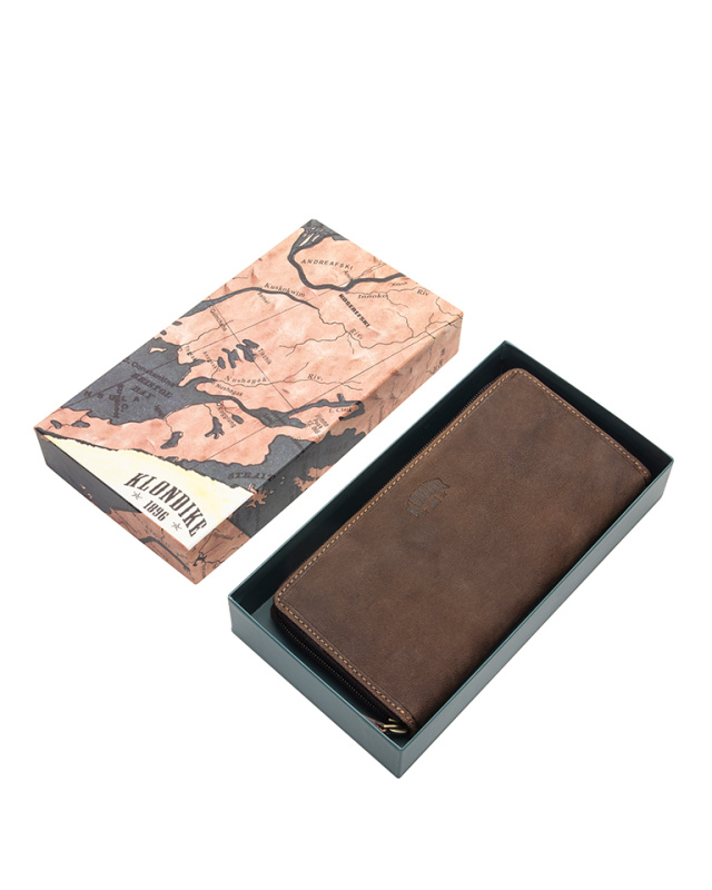 • Благодаря своим размерам (ширина – около 19,5 см; высота – около 10 см), бумажник «Klondike» прекрасно уместится в любой сумке. Застежка на молнии предоставит содержимому Вашего бумажника дополнительную защиту.