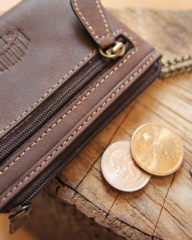 • Ключница оснащена двумя металлическими цепочками, на каждой из которых прикреплено прочное кольцо для ключа. Снаружи ключницы также есть дополнительное отделение на молнии для хранения монет.