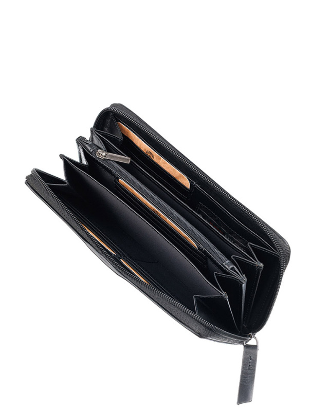 Функциональная организация: основное отделение на молнии, 4 отделения для купюр, 14 отделений для кредитных карт, 3 кармана, 2 сетчатых кармана, отделение для монет на молнии, задний карман на молнии.