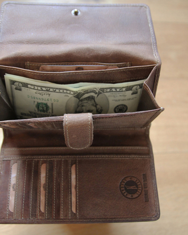 Функциональная организация: 20 отделений для кредитных карт, отделение для купюр, 5 карманов, отделение для мелочи на молнии
