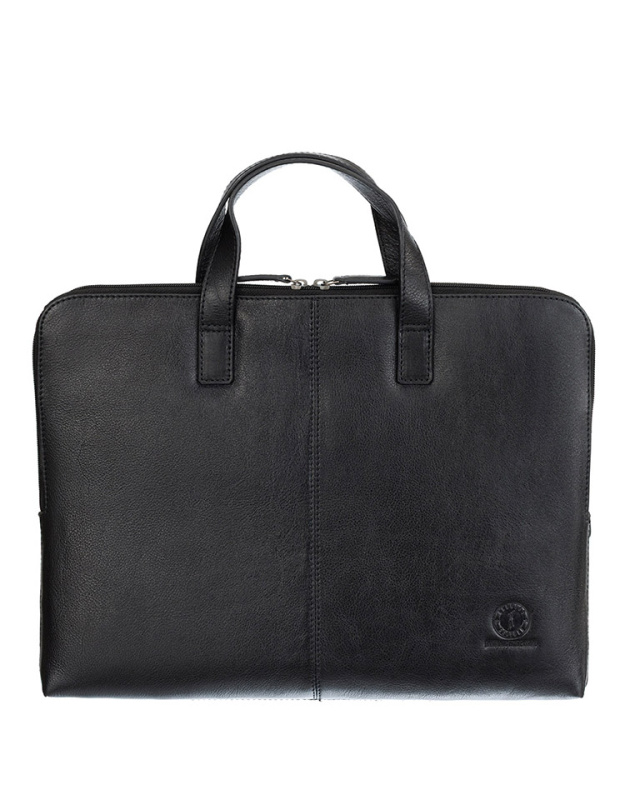 Сумка для ноутбука KLONDIKE "URBAN", натуральная кожа, черный цвет, 38 х 28 х 4 см