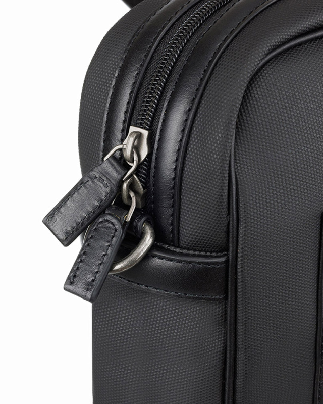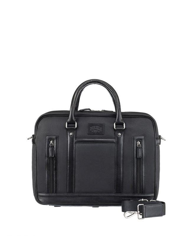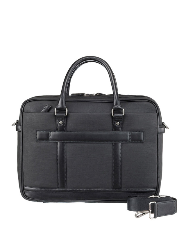Портфель KLONDIKE "URBAN", натуральная кожа/канвас, черный цвет, 39 х 30 х 10 см