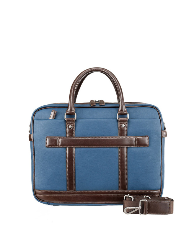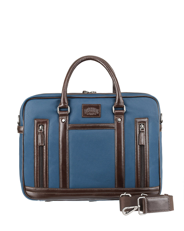 Портфель KLONDIKE "URBAN", натуральная кожа/канвас, синий/темно-коричневый цвет, 39 х 30 х 10 см