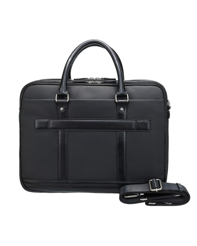 Портфель KLONDIKE "URBAN", натуральная кожа/канвас, черный цвет, 40 х 30 х 11 см