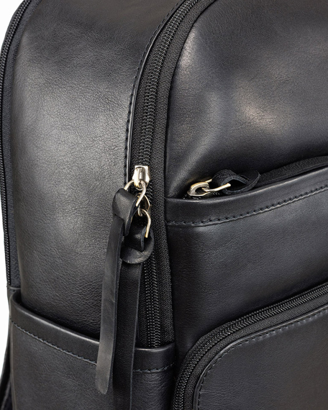 Внутренняя организация: основное отделение на молнии с внутренним карманом на молнии, открытый карман для телефона, органайзером для 3-х ручек и 4 отделениями для кредитных карт; мягкое отделение на молнии для ноутбука диагональю 15’’.