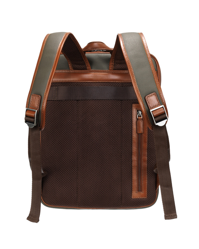 Рюкзак KLONDIKE "URBAN", натуральная кожа/канвас, оливковый/коричневый цвет, 30 х 40 х 11 см