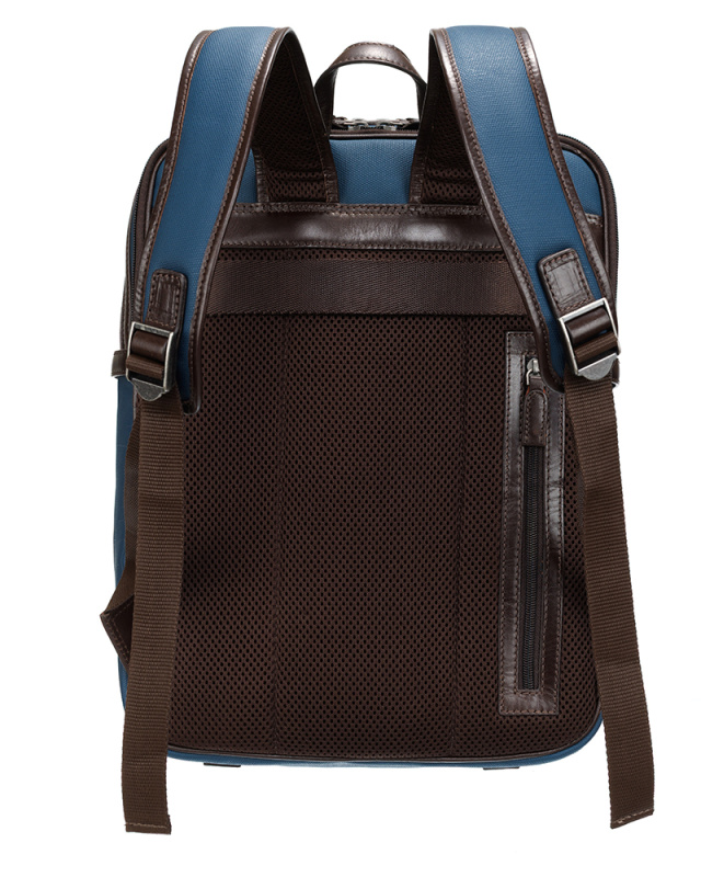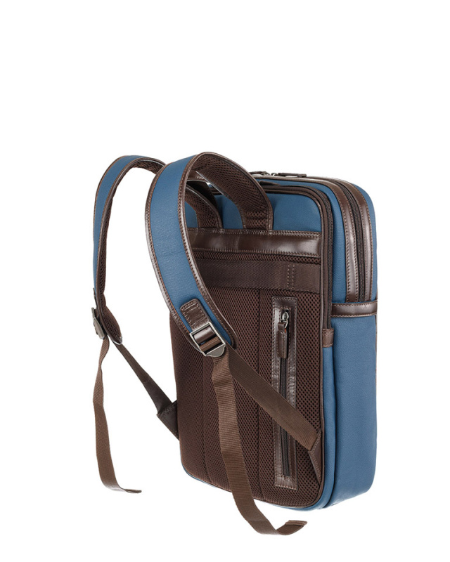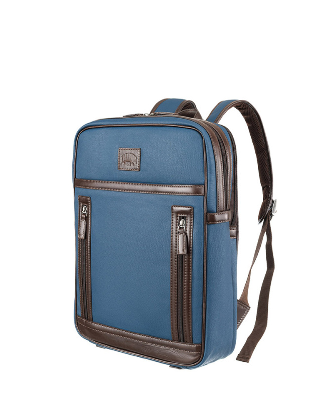 Рюкзак KLONDIKE "URBAN", натуральная кожа/канвас, синий/темно-коричневый цвет, 30 х 40 х 11 см