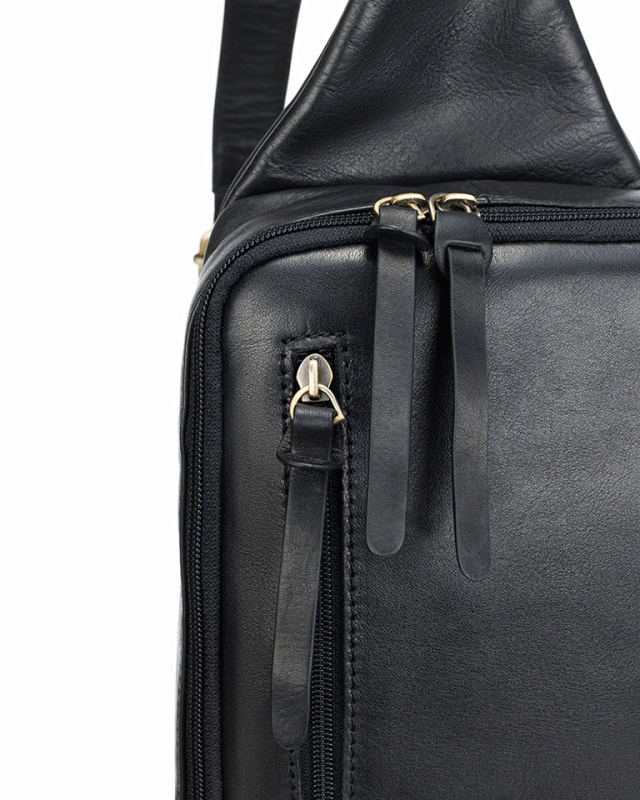 Внешняя организация: передний карман на молнии, задний карман на молнии, регулируемый плечевой ремень.