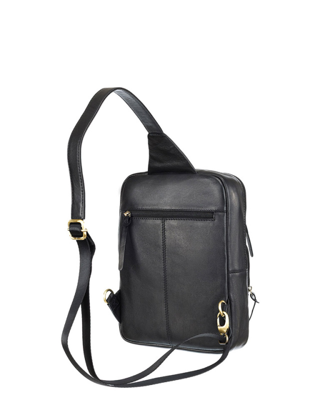 Внешняя организация: переднее отделение на молнии, 2 передних кармана на молнии, задний карман на молнии, регулируемый плечевой ремень.