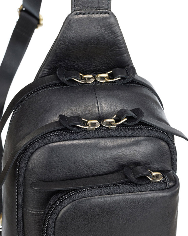 Внешняя организация: передний карман на молнии, задний карман на молнии, регулируемый плечевой ремень.