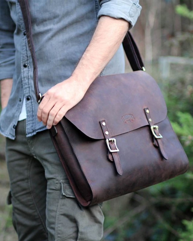 Высококачественная натуральная кожа в темно-коричневом цвете | Съемный ремень на плечо, мягкое отделение для ноутбука | Мужская сумка через плечо