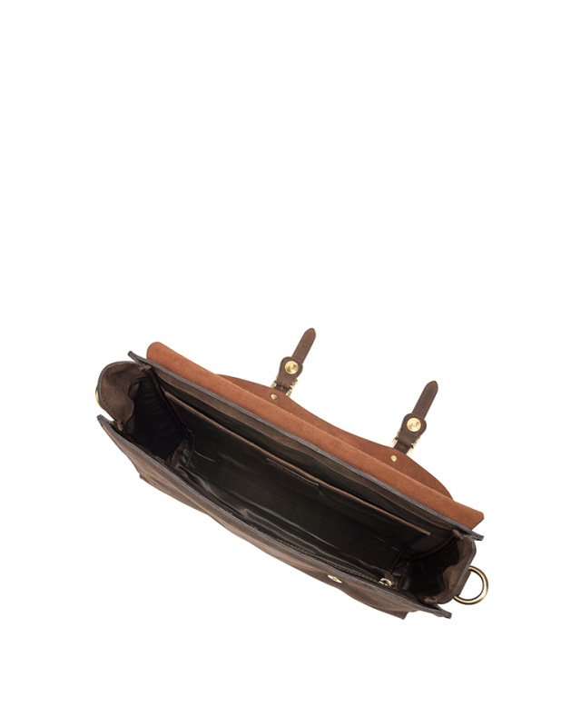 - Прочные металлические части латунного цвета подчеркивают высокое качество продукта. Благодаря своим размерам (длина – 38 см, высота - 33 см и глубина - 7 см) сумка позволяет хранить многочисленные вещи, например, большую папку и вещи схожего размера.