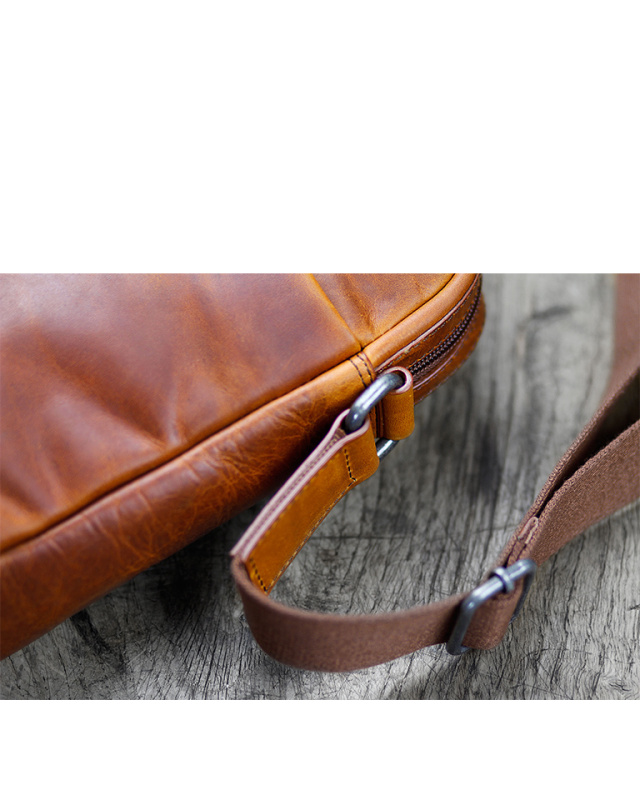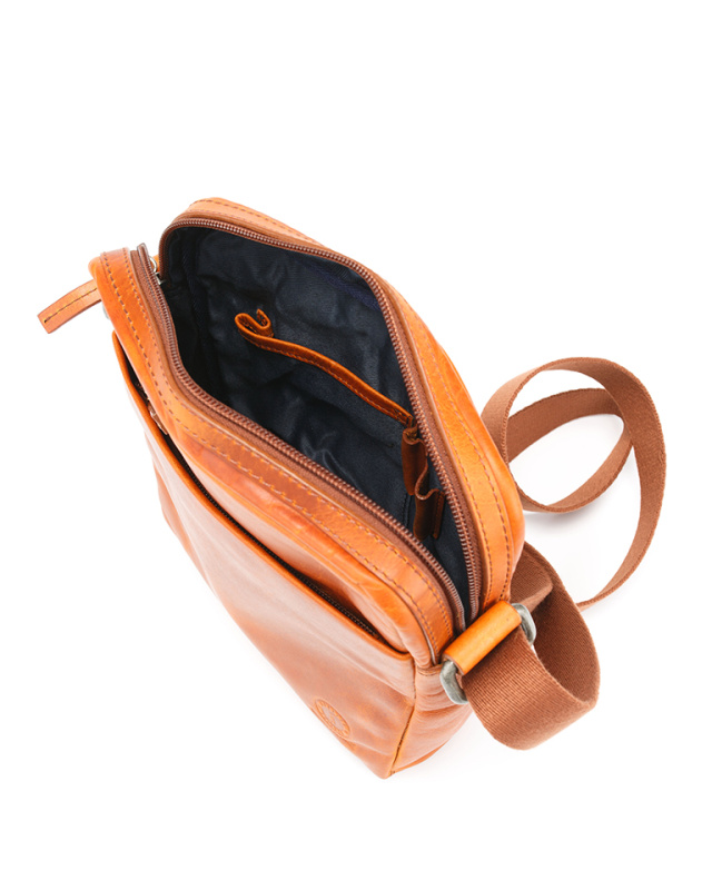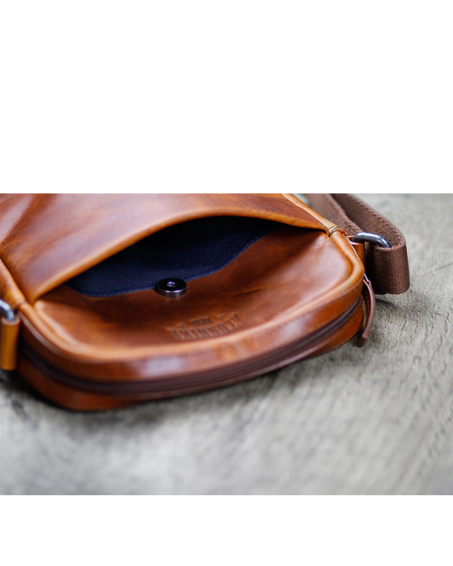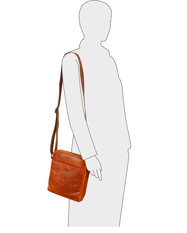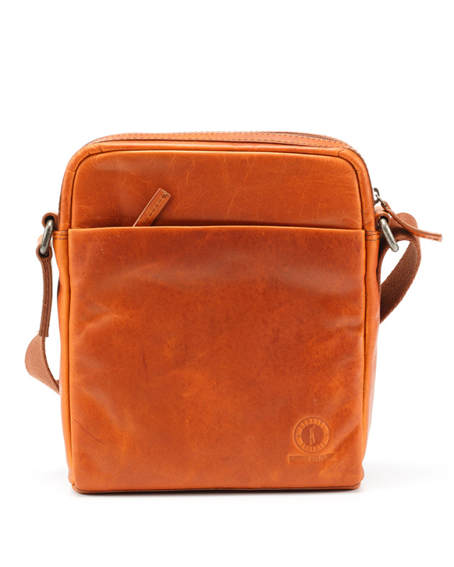 Высококачественная натуральная кожа цвета коньяк | Передний карман на молнии | Мужская сумка через плечо