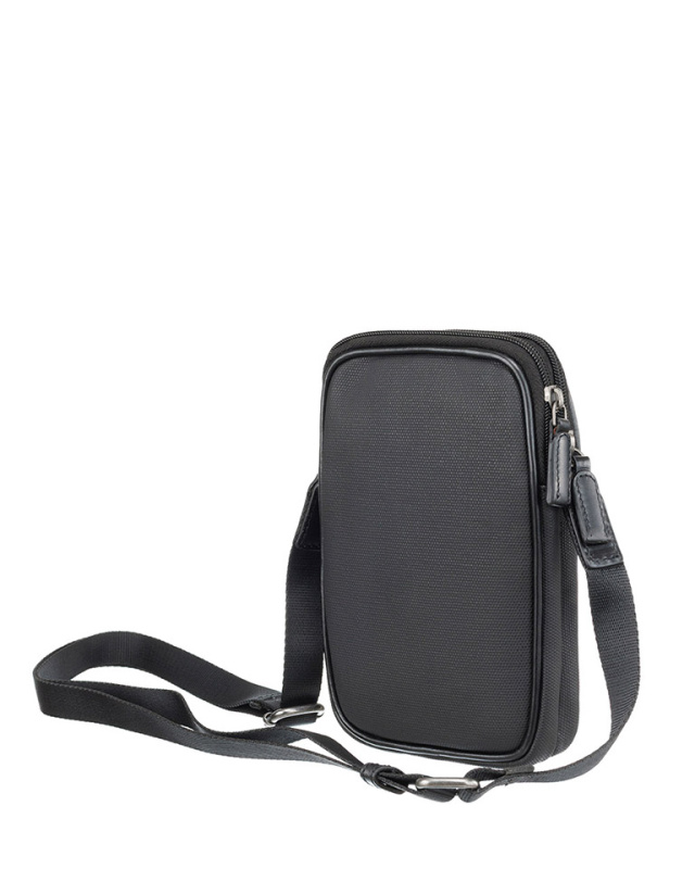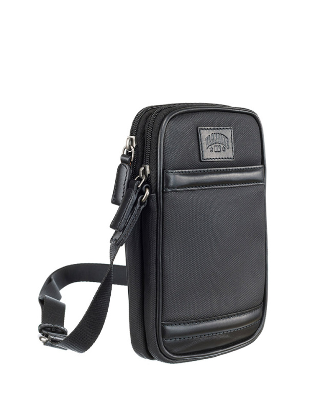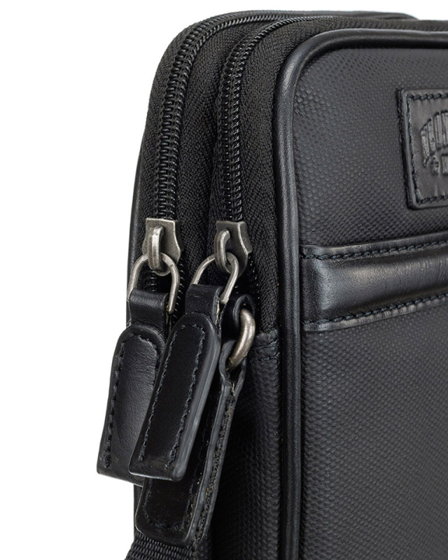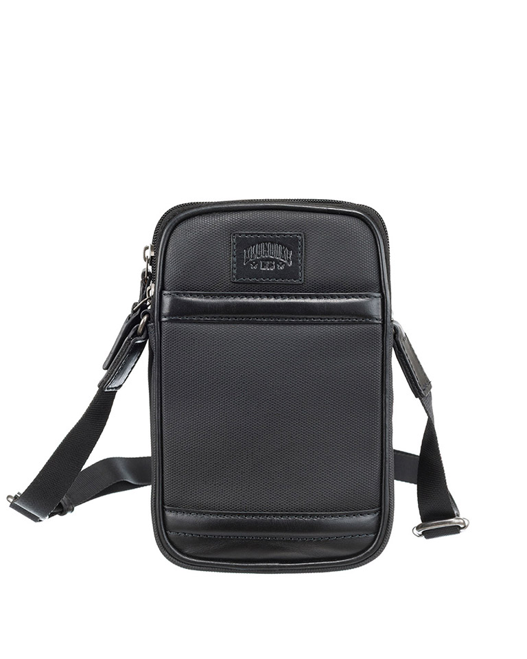Сумка через плечо KLONDIKE "URBAN", натуральная кожа/канвас, черный цвет, 12 х 19 х 4,5 см