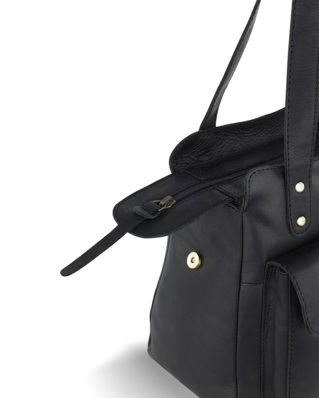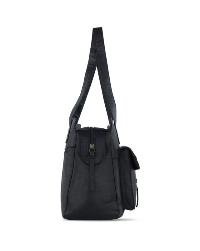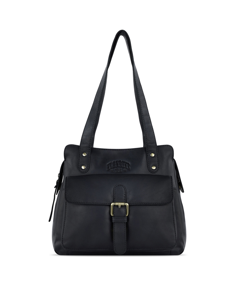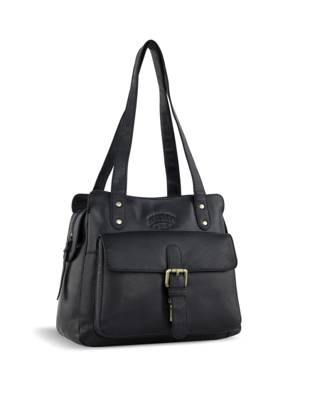 Сумка женская через плечо KLONDIKE RUSH «Zoe», натуральная кожа в черном цвете, 28 х 24 х 18 см