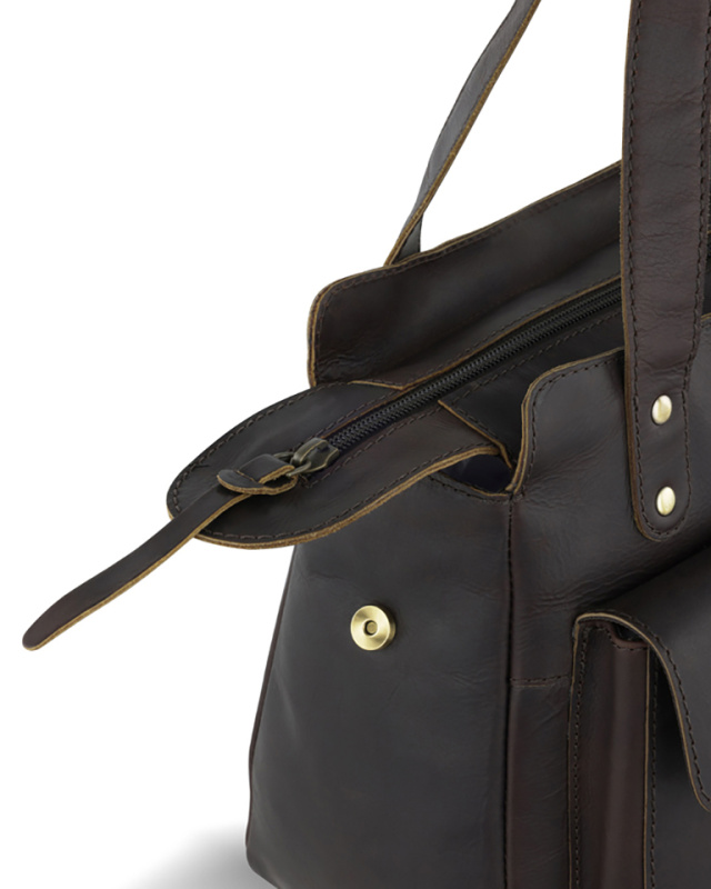 Сумка женская через плечо KLONDIKE RUSH «Zoe», натуральная кожа в темно-коричневом цвете, 28 х 24 х 18 см